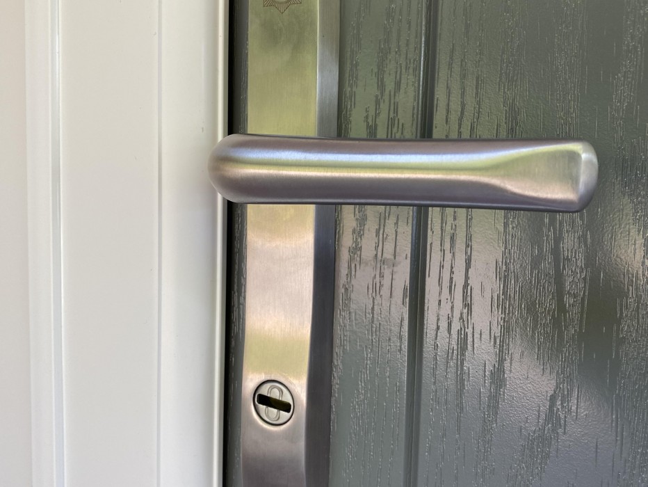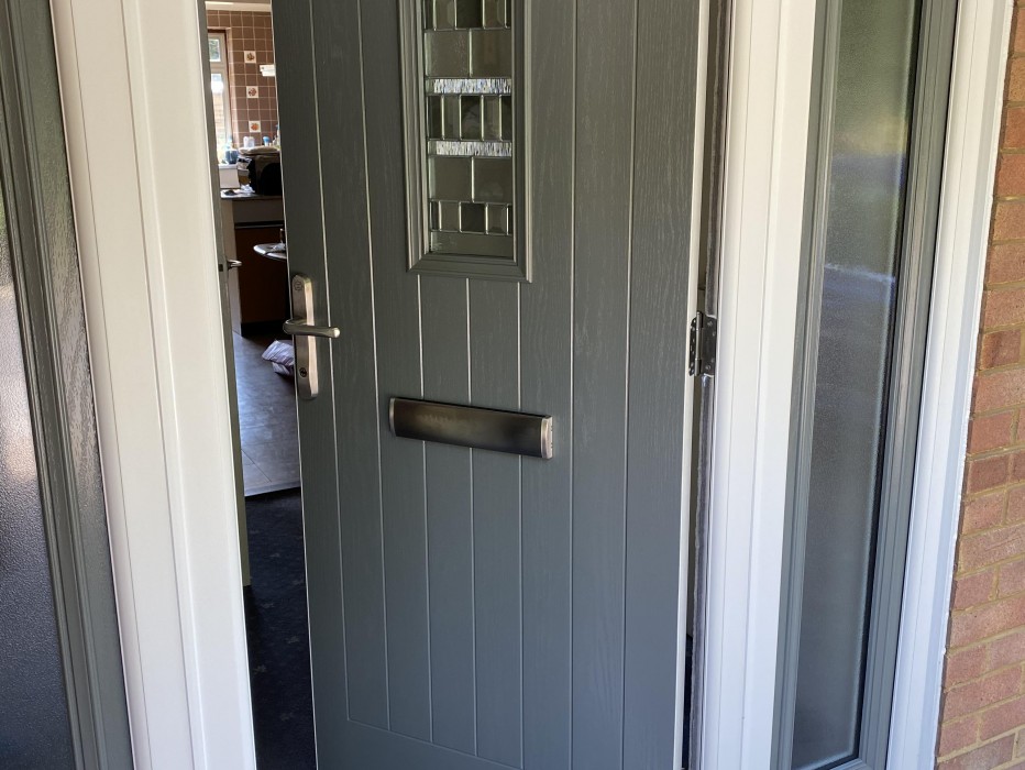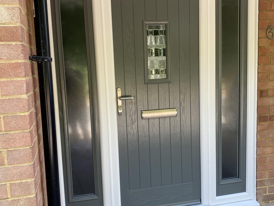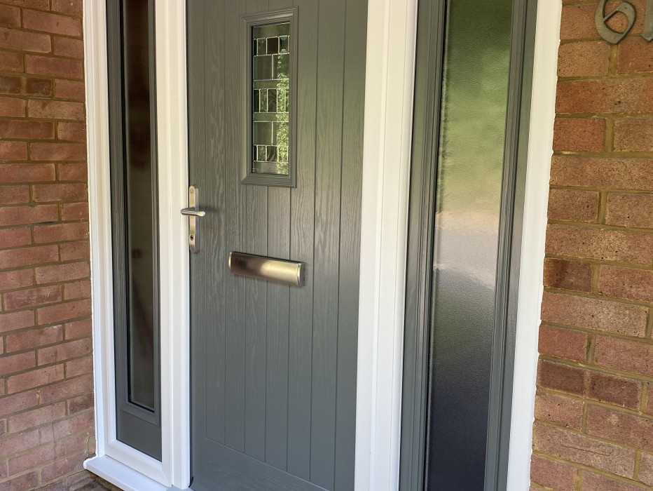 Recently installed in Swanley, a Magnum 49 Mouse Grey Composite Front Door with matching Magnum 49 Mouse Grey Side Panels.