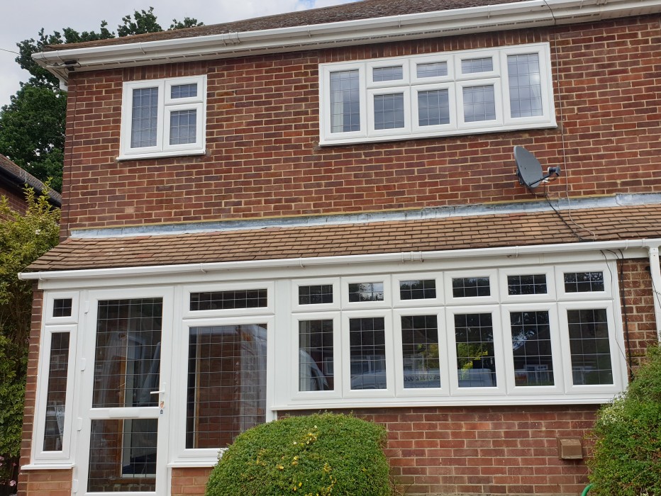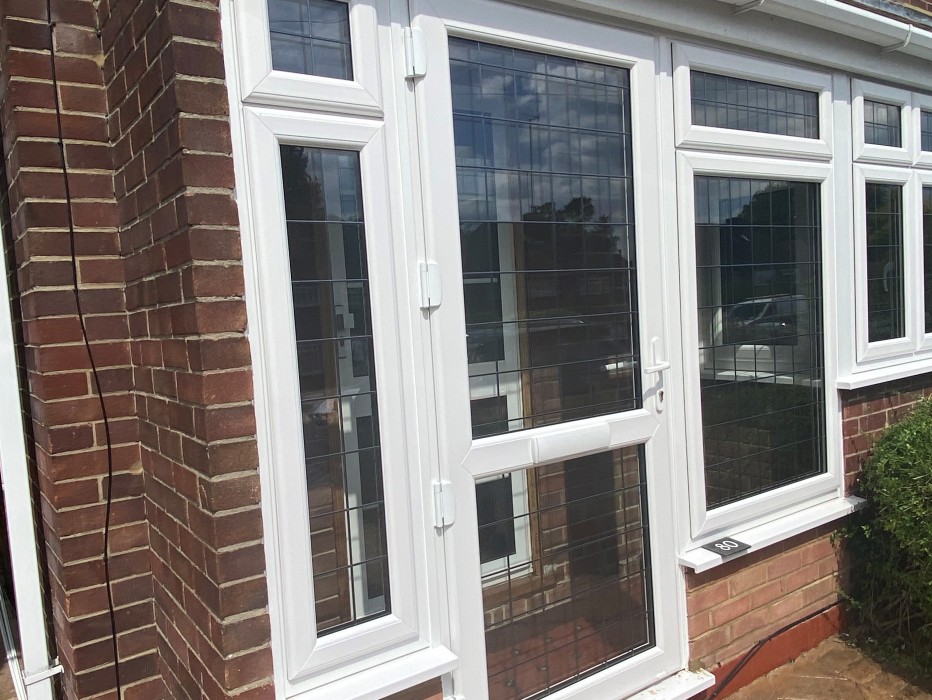 White UPVC Windows with Georgian Lead design to the windows and door. From a recent installation in Orpington,