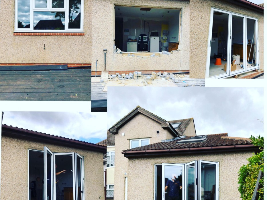 A recent installation in Hextable of Bi-folding Aluminium doors. The installation included replacing the existing window and knocking out of brickwork to make way for the doors.