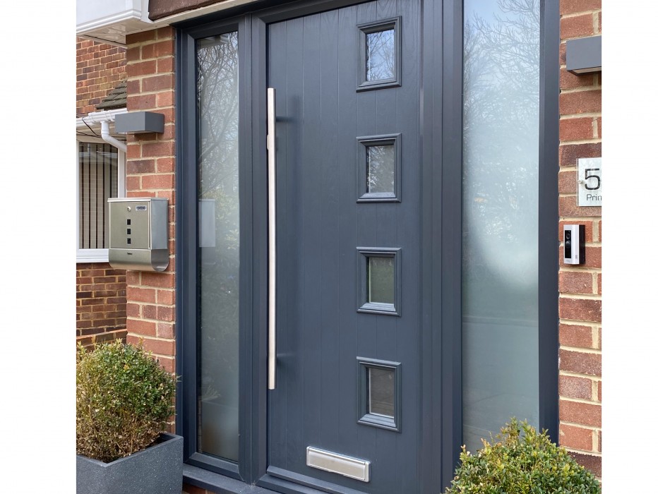 Anthracite Grey Composite Front door with Pull bar handle