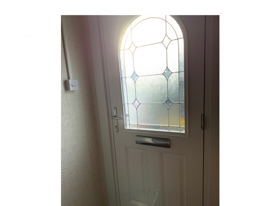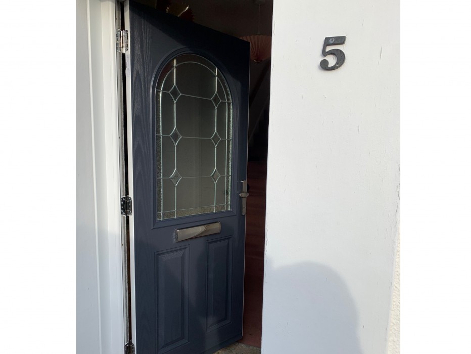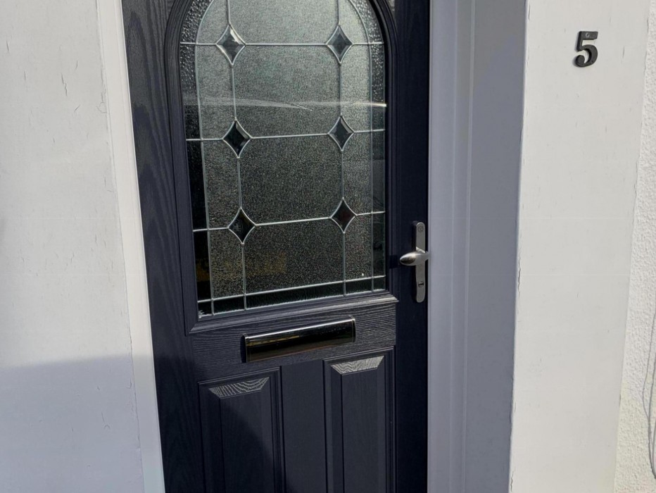 A recently installed Composite Front Door in Swanley. The Glass design is Palma and the door colour is Anthracite Grey