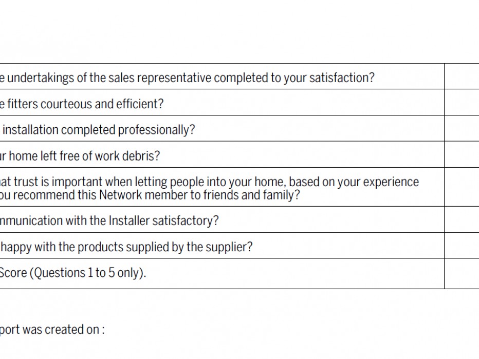 The following report is a true and accurate reflection of questionnaire responses from customers of the above named Independent Network Member. The Door & Window Centre Ltd scored 100% satisfaction on installations for the month of December 2019!
